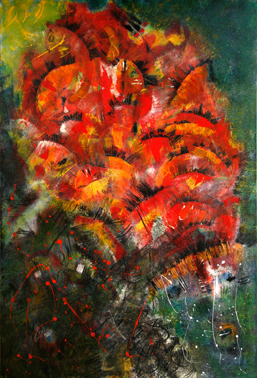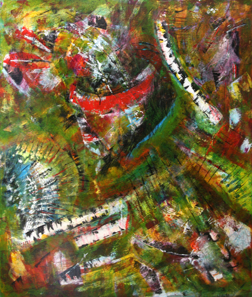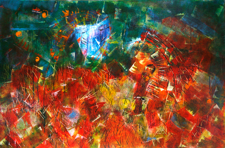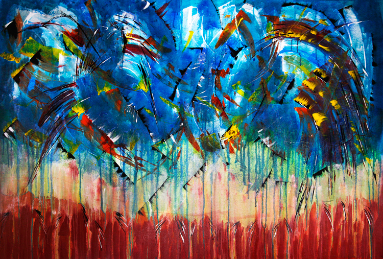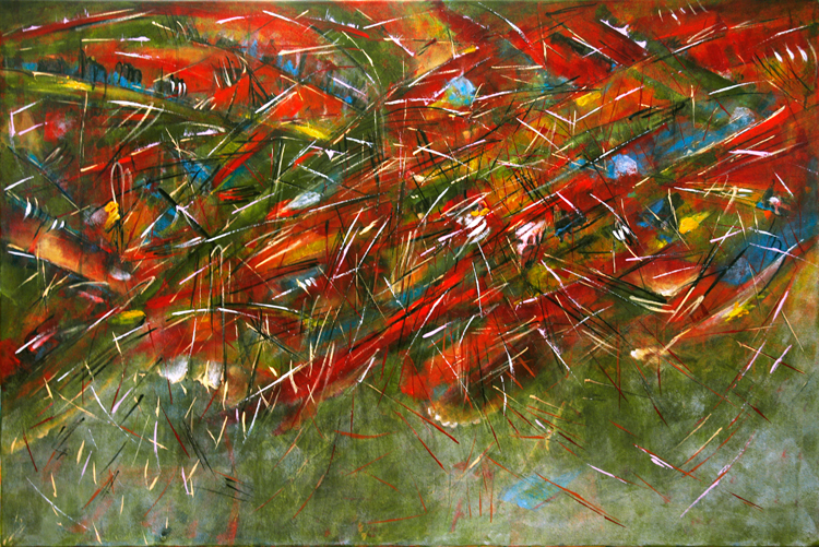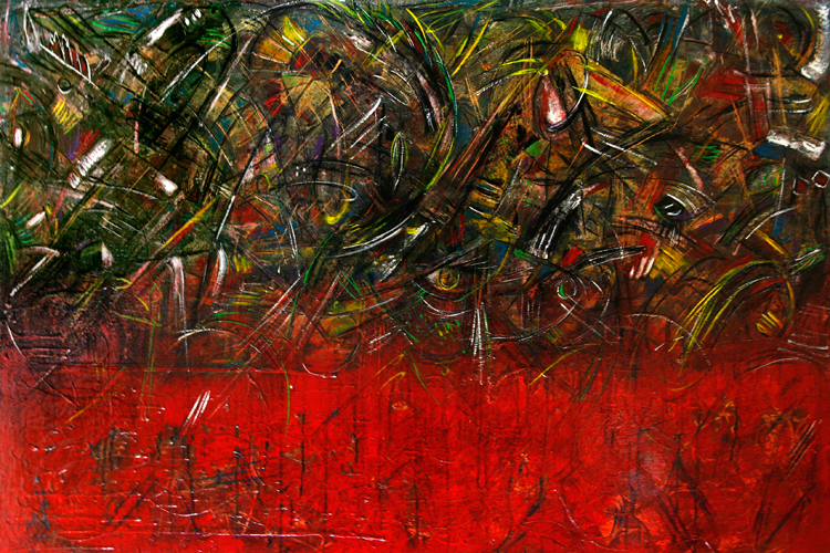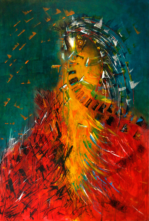 Over twenty works complement each other and form one large series with a simplified illusion that seeks to strike a balance between the spiritual and the material, seeking to understand the “red” man to whom the Sun and Earth are the parents of all organic life, while prayers to the Invisible and Eternal, mystical energy that controls the world and reveals itself in the power of nature, the creator-Wakan Tank.
